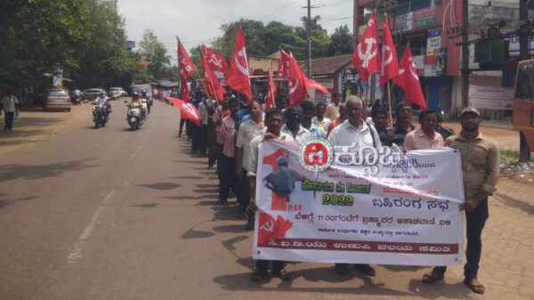 1 ವರದಿ: ಬಿ.ಎಸ್.ಆಚಾರ್ಯ ಬ್ರಹ್ಮಾವರ : ನಾನಾ ಕಾರ್ಮಿಕ ಸಂಘಟನೆಗಳು ಜಂಟಿಯಾಗಿ ಭಾನುವಾರ ಸೌಹಾರ್ದತೆಯ ಮೇ ದಿನಾಚರಣೆ ಬ್ರಹ್ಮಾವರದಲ್ಲಿ ಜರುಗಿತು.ಇಲ್ಲಿನ ಆಕಾಶವಾಣಿ ವೃತ್ತದ ಬಳಿಯಿಂದ ರಥ ಬೀದಿ ಮೂಲಕ ನಾನಾ ಸಂಘಟನೆಗಳ ಕಾರ್ಮಿಕರು...