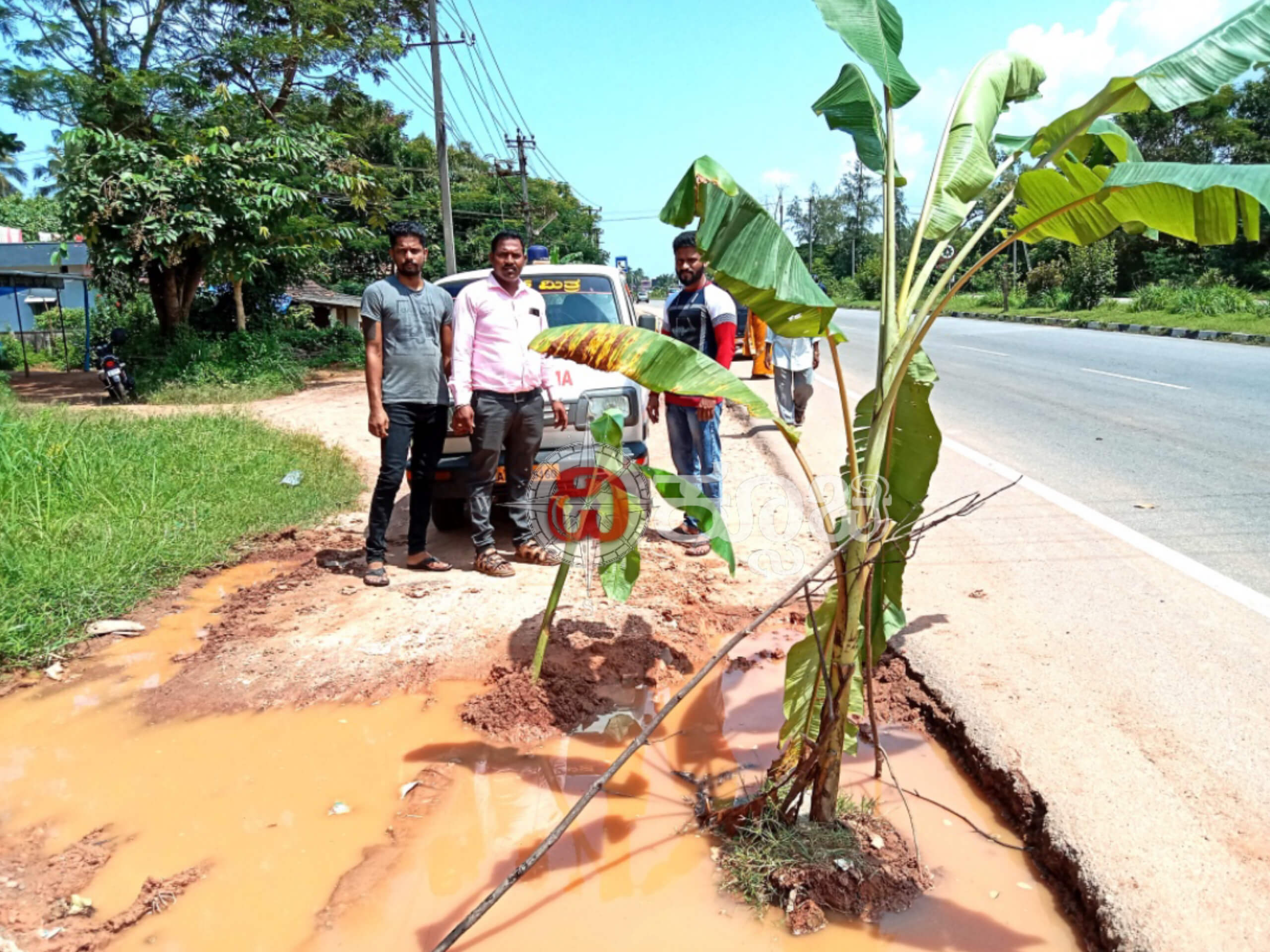 ಕೋಟ : ರಸ್ತೆ ಬದಿ ಗುಂಡಿಯಲ್ಲಿ ಬಾಳೆಗಿಡ ನೆಟ್ಟು ಪ್ರತಿಭಟನೆ
