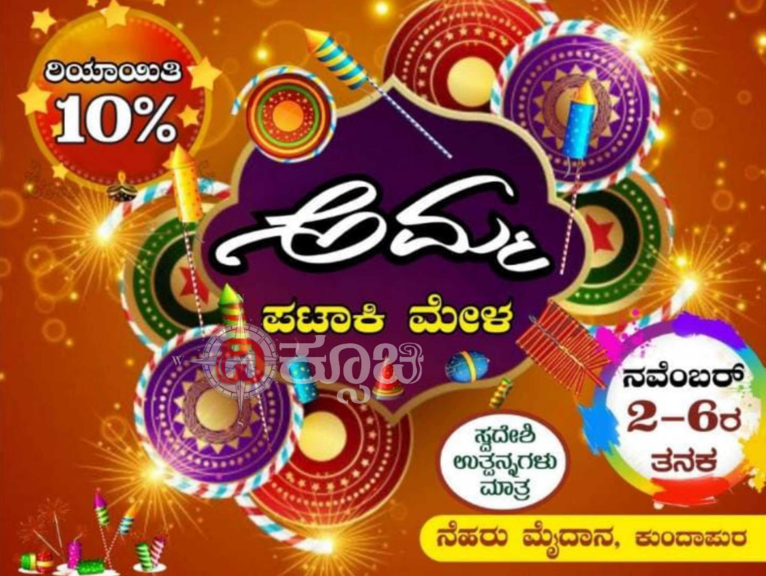 ಕುಂದಾಪುರ : ವ್ಯಾಪಾರದಿಂದ ಬರುವ ಲಾಭದಲ್ಲಿ ಅಶಕ್ತರಿಗೆ ಸಹಾಯ ಮಾಡುವ ಅಮ್ಮ ಪಟಾಕಿ ಮೇಳಕ್ಕೆ 4 ವರ್ಷಗಳ ಸಂಭ್ರಮ. ಈ ಬಾರಿ ಅಮ್ಮ ಪಟಾಕಿ ಮೇಳದ ಮೂಲಕ ವ್ಯಾಪಾರದ ಒಂದು ಭಾಗವನ್ನು ಕ್ಯಾನ್ಸರ್ ನ ಪೀಡಿತ ಮಗುವಿಗೆ ವೈದ್ಯಕೀಯ ನೆರವಿಗಾಗಿ ಹಮ್ಮಿಕೊಂಡಿದೆ. ಕುಂದಾಪುರ ನೆಹರು ಮೈದಾನದಲ್ಲಿ ಅಮ್ಮ ಪಟಾಕಿ ಮೇಳ ನಡೆಯಲಿದೆ.