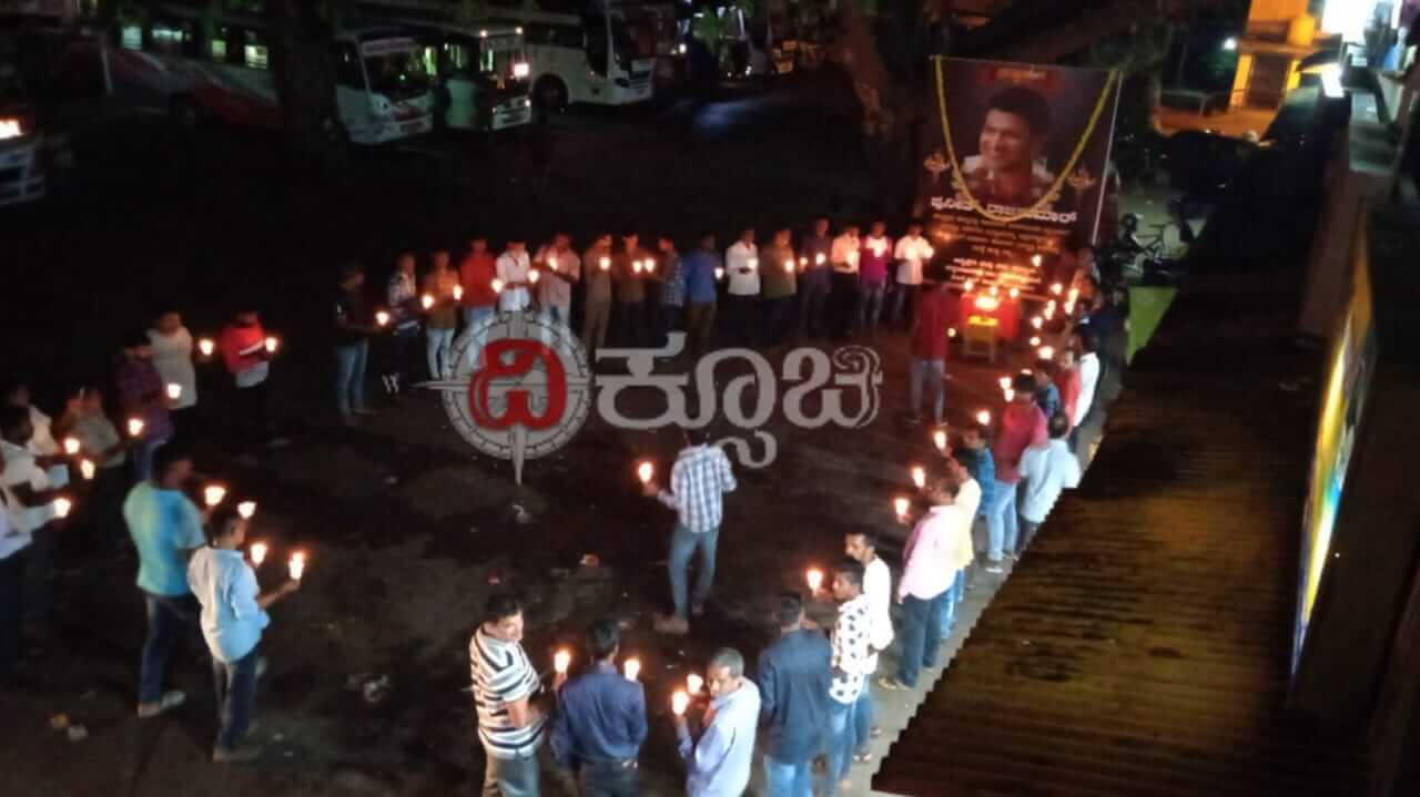 ಕುಂದಾಪುರ : ಅಗಲಿದ ಪವರ್ ಸ್ಟಾರ್ ಪುನೀತ್ ರಾಜ್ ಕುಮಾರ್ ಅವರಿಗೆ ಕನ್ನಡಾಭಿಮಾನ ಡಾ. ರಾಜ್ ಸಂಘಟನೆ ವತಿಯಿಂದ ದೀಪಗಳನ್ನು ಬೆಳಗಿಸಿ ಭಾವ ಪೂರ್ಣ ಶ್ರದ್ಧಾಂಜಲಿ ಅರ್ಪಿಸಲಾಯಿತು. ಹೊಸ ಬಸ್ ನಿಲ್ದಾಣದಲ್ಲಿ ಜರುಗಿದ ಈ ಕಾರ್ಯಕ್ರಮದಲ್ಲಿ ಸಂಘಟನೆ ಅಧ್ಯಕ್ಷರಾದ ರತ್ನಾಕರ ಪೂಜಾರಿ ಅವರು ದೀಪ ಬೆಳಗಿಸುವುದರ ಮೂಲಕ ಕಾರ್ಯಕ್ರಮಕ್ಕೆ ಚಾಲನೆ ನೀಡಿದರು.