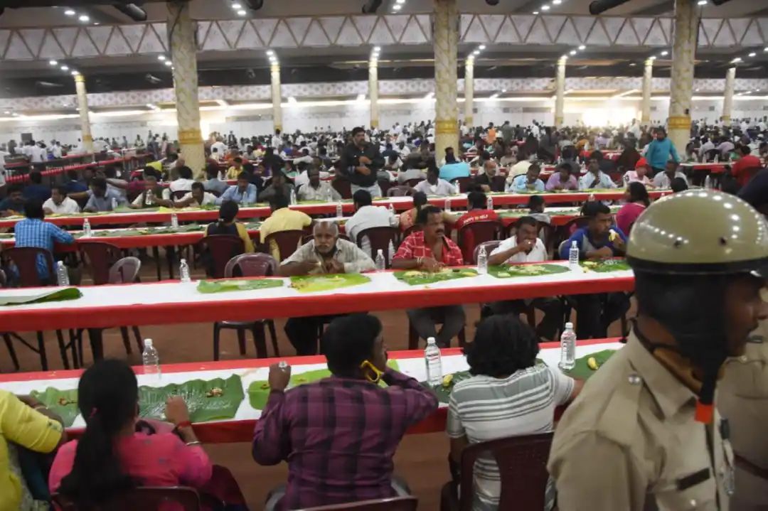 ಬೆಂಗಳೂರು: ನಟ ಪುನೀತ್ ರಾಜ್ ಕುಮಾರ್ ಅವರ ಪುಣ್ಯ ಸ್ಮರಣೆ ಹಿನ್ನಲೆಯಲ್ಲಿ ಅರಮನೆ ಮೈದಾನದಲ್ಲಿ ದೊಡ್ಮನೆ ಕುಟುಂಬದಿಂದ ಅನ್ನಸಂತರ್ಪಣೆ ನಡೆಯುತ್ತಿದೆ. ತ್ರಿಪುರವಾಸಿನಿಯಲ್ಲಿ ನಡೆಯುತ್ತಿರುವಂತ ಭೋಜನ ಕೂಟದಲ್ಲಿ ವೆಜ್ ಹಾಗೂ ನಾನ್ ವೆಜ್ ಊಟದ ವ್ಯವಸ್ಥೆ ಮಾಡಲಾಗಿದೆ. ಪುನೀತ್ ರಾಜ್ ಕುಮಾರ್ ಅಭಿಮಾನಿಗಳಿಗೆ ಖುದ್ದು ದೊಡ್ಮನೆ ಕುಟುಂಬದವರೇ ಊಟ ಬಡಿಸೋ ಕಾರ್ಯದಲ್ಲಿ ನಿರತರಾಗಿದ್ದಾರೆ. ಈ ಸಂದರ್ಭ ಪುನೀತ್ ರಾಜ್ ಕುಮಾರ್ ಪತ್ನಿ ಅಶ್ವಿನಿ, ನಟ ಶಿವರಾಜ್ ಕುಮಾರ್ ಅಭಿಮಾನಿಗಳಿಗೆ ಅಪ್ಪು ಅಭಿಮಾನಿಗಳಿಗೆ ಊಟ ಬಡಿಸಿ ಭಾವುಕರಾದರು.