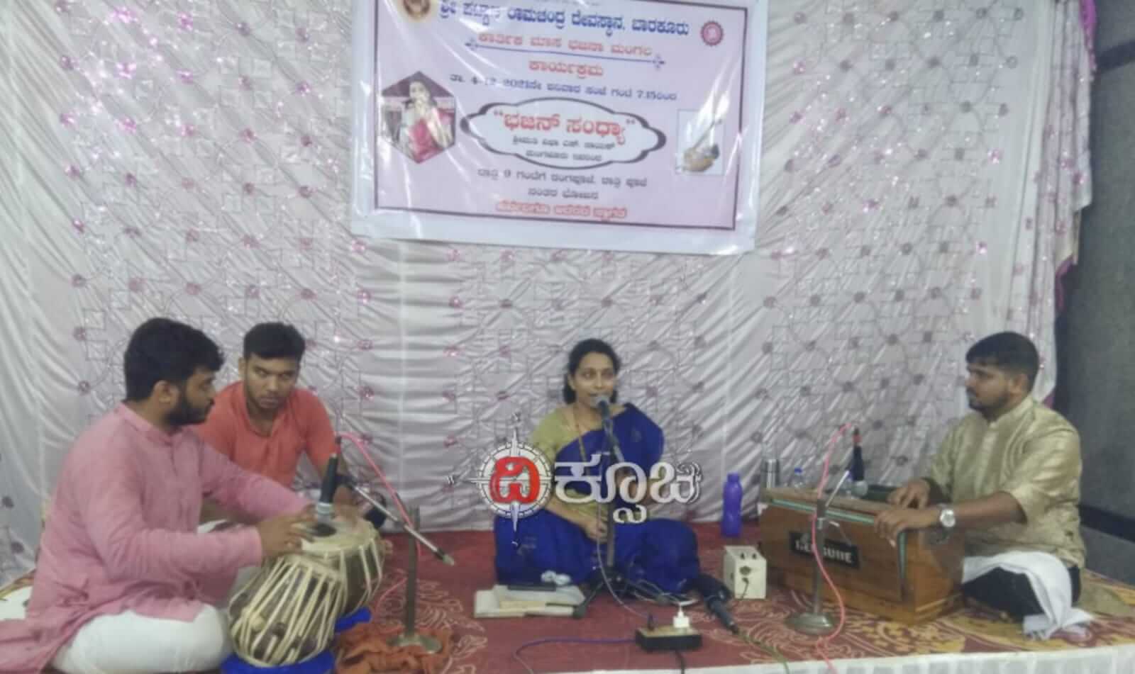 ಬ್ರಹ್ಮಾವರ : ಬಾರಕೂರು ಶ್ರೀಪಟ್ಟಾಭಿರಾಮಚಂದ್ರ ದೇವಸ್ಥಾನದಲ್ಲಿ ಕಾರ್ತಿಕ ಮಾಸದ ಭಜನಾ ಮಂಗಲ ಕಾರ್ಯಕ್ರಮದ ಅಂಗವಾಗಿ ವಿಭಾ .ಎಸ್ .ನಾಯಕ್ ಮಂಗಳೂರು ಇವರಿಂದ ಹಿಂದೂಸ್ತಾನಿ ಭಜನ್ ಸಂಧ್ಯಾ ಕಾರ್ಯಕ್ರಮ ಜರುಗಿತು.