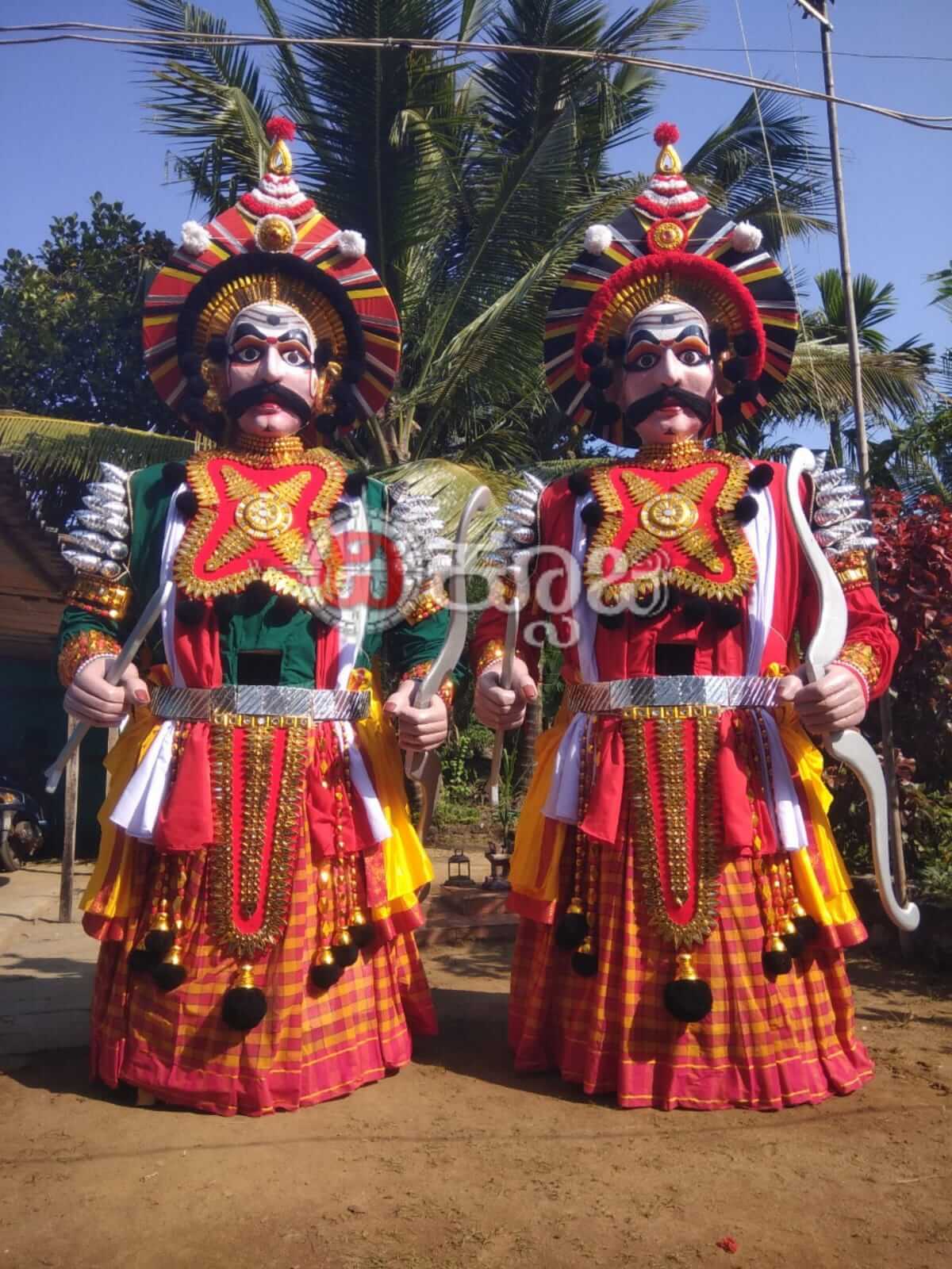 ಪಾಲೆ ಮರದಿಂದ ಮುಖ ಮತ್ತು ಕೈಗಳನ್ನು ತಯಾರು ಮಾಡಿ ದೇಹದ ಆಕಾರ ಬರಲು ಪ್ಲಾಸ್ಟಿಕ್ ಪಟ್ಟಿಯನ್ನು ಬಳಸಿ ಅದರ ಮೇಲೆ ಫೈಭರ್ ಲೇಪನ ಮಾಡಿ ಯಕ್ಷಗಾನ ಶೈಲಿಯ ಬಟ್ಟೆಯಿಂದ ಯಕ್ಷಗಾನದ ಸಾಂಪ್ರದಾಯಕ ಉಡುಪು ಮತ್ತು ಆಭರಣದಿಂದ ರಚಿಸಲಾಗಿದೆ.