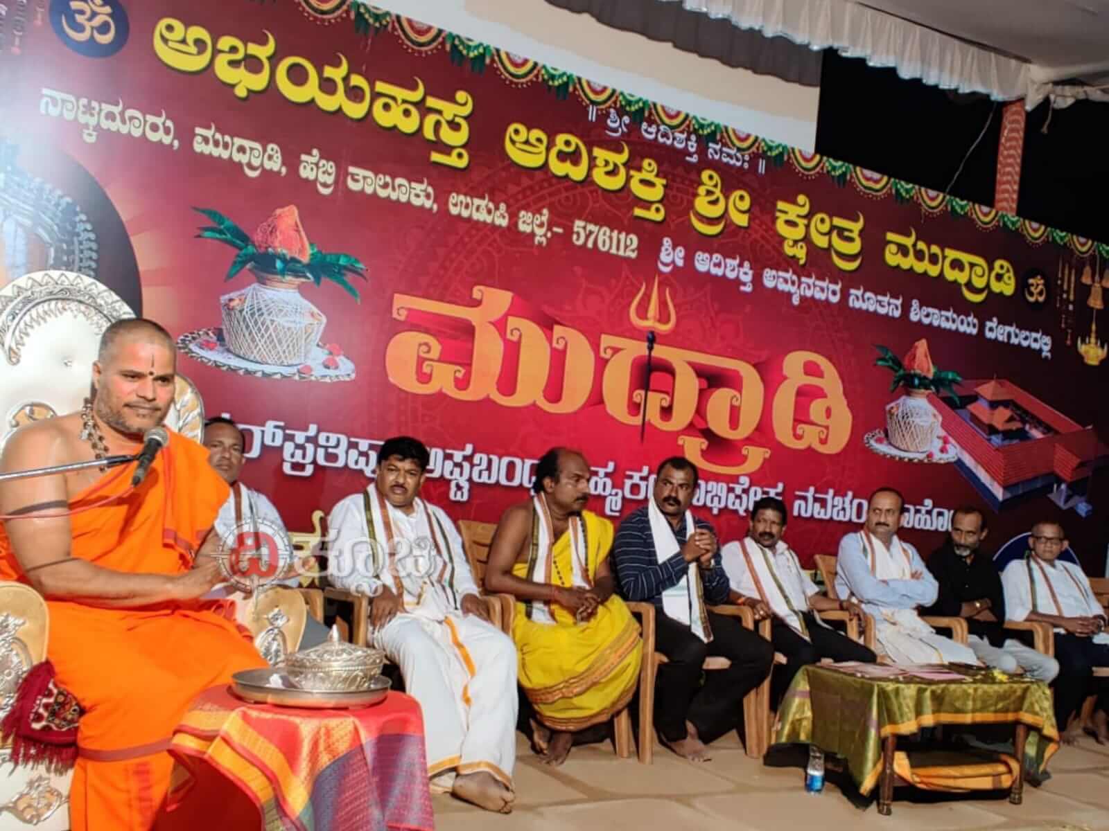 ಮುದ್ರಾಡಿ ಆದಿಶಕ್ತಿ ದೇವಸ್ಥಾನದ ಬ್ರಹ್ಮಕಲಶೋತ್ಸವ – ಧಾರ್ಮಿಕ ಸಭೆ : ಹಿಜಾಬ್‌ ಪ್ರಕರಣ ಸಮಾಜವನ್ನು ತಪ್ಪು ದಾರಿಗೆ ಎಳೆಯುವ ಕುತಂತ್ರ : ರಾಜಶೇಖರಾನಂದ ಸ್ವಾಮೀಜಿ