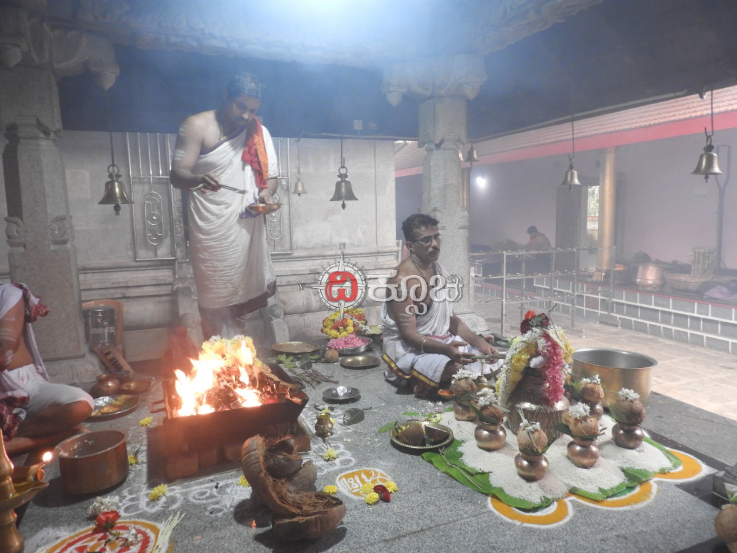 ಧಾರ್ಮಿಕ ಕಾರ್ಯಕ್ರಮದ ಅಂಗವಾಗಿ ನವಕ ಪ್ರಧಾನ, ನವಕುಂಭ ಕಲಶ ಸ್ಥಾಪನೆ, ಅಧಿವಾಸ ಹೋಮ, ಕಲಶಾಭಿಷೇಕ ಮಹಾ ಪೂಜೆ ಜರುಗಿತು.