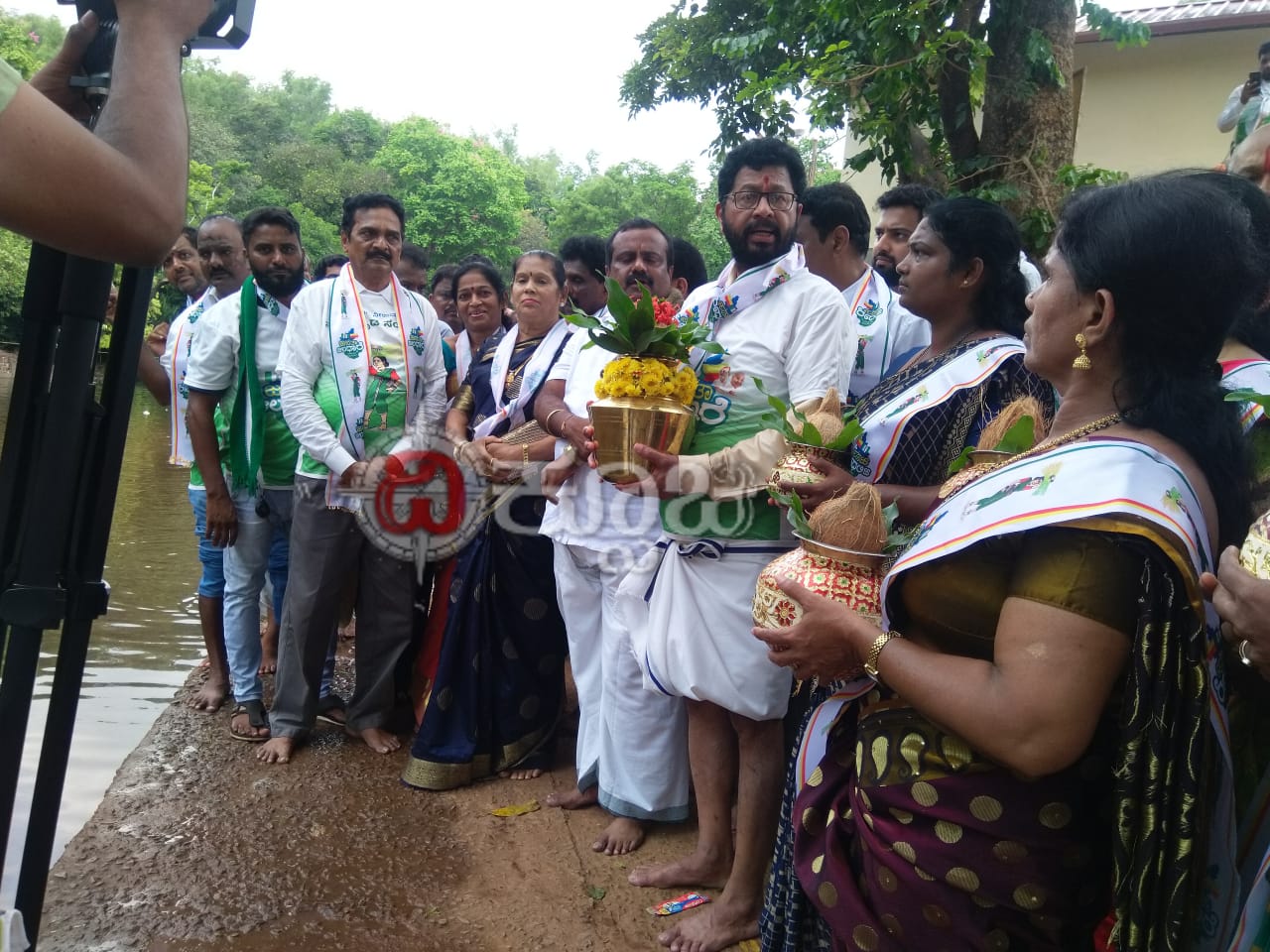 ಸೌಪರ್ಣಿಕಾ ನದಿಗೆ ಪೂಜೆಯನ್ನು ಸಲ್ಲಿಸಿ ಸುಮಂಗಲೆಯರು ಸೇರಿ, ಜಿಲ್ಲಾಧ್ಯಕ್ಷ ಯೋಗೀಶ್ ವಿ.ಶೆಟ್ಟಿ ರಥಯಾತ್ರೆಯ ಮುಖ್ಯ ಕಲಶಕ್ಕೆ ವಿದ್ಯುಕ್ತವಾಗಿ ಸೌಪರ್ಣಿಕ ನದಿ ನೀರನ್ನು ಶೇಖರಿಸುವ ಮೂಲಕ ಚಾಲನೆ ನೀಡಿದರು