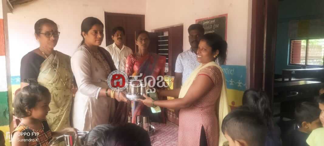 ಶಾಲಾ ವಿದ್ಯಾರ್ಥಿಗಳಿಗೆ ಮತ್ತು ಅಂಗನವಾಡಿ ಮಕ್ಕಳಿಗೆ ಅಗತ್ಯ ವಸ್ತುವಾದ ಬಟ್ಟಲು ಮತ್ತು ಲೋಟವನ್ನು ಹೋಟೆಲ್ ಉಡುಪಿ ರೆಸ್ಟೋರೆಂಟ್ ಕೊಲ್ಲಾಪುರ ಶಿರೋಲಿ ಉದ್ಯಮಿಯಾದ ಸುನಿತಾ ಪ್ರಕಾಶ್ ಕೋಟೇಶ್ವರ ಮೇಪು ಇವರು ವಿತರಿಸಿದರು.
