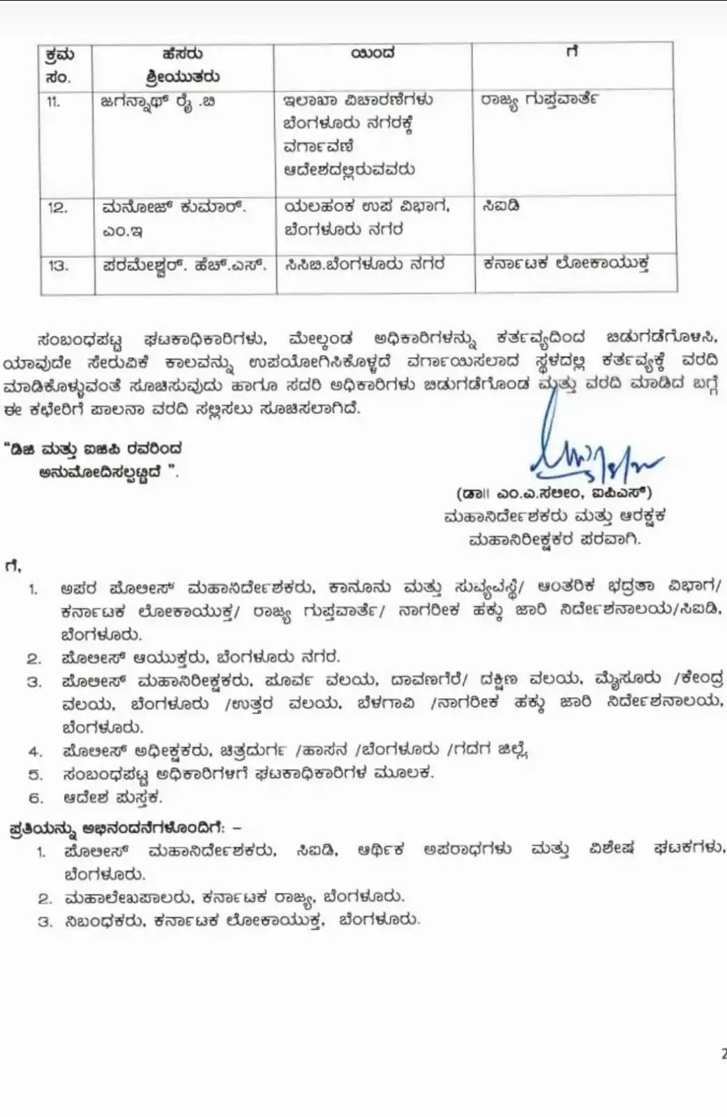ರಾಜ್ಯ 13 ಡಿವೈಎಸ್ಪಿಗಳನ್ನು ವರ್ಗಾವಣೆ ಮಾಡಿ ಆದೇಶ Published August 5, 2022 0 ಬೆಂಗಳೂರು: ರಾಜ್ಯ ಸರ್ಕಾರ ಇಂದು 13 ಡಿವೈಎಸ್ಪಿಗಳನ್ನು ವರ್ಗಾವಣೆ ಮಾಡಿ ಆದೇಶಿಸಿದೆ. ಈ ಕುರಿತಂತೆ ಮಹಾ ನಿರ್ದೇಶಕರು ಮತ್ತು ಆರಕ್ಷಕ ಮಹಾನಿರೀಕ್ಷಕರು ಆದೇಶ ಹೊರಡಿಸಿದ್ದಾರೆ. ಈ ತಕ್ಷಣದಿಂದ ಜಾರಿಗೆ ಬರುವಂತೆ ಈ ಕೆಳಕಂಡ 13 ಡಿವೈಎಸ್ಪಿ ಅಧಿಕಾರಿಗಳನ್ನು ವರ್ಗಾವಣೆ ಮಾಡಲಾಗಿದೆ ಎಂದು ತಿಳಿಸಿದ್ದಾರೆ. Advertisement. Scroll to continue reading. In this article:Diksoochi news, diksoochi Tv, diksoochi udupi, DYSP Transfer, Karnataka government Click to comment Leave a Reply Cancel replyYour email address will not be published. Required fields are marked *Comment * Name * Email * Website Save my name, email, and website in this browser for the next time I comment. Advertisement Trending You May Also Like