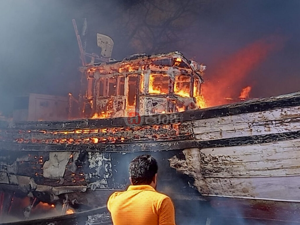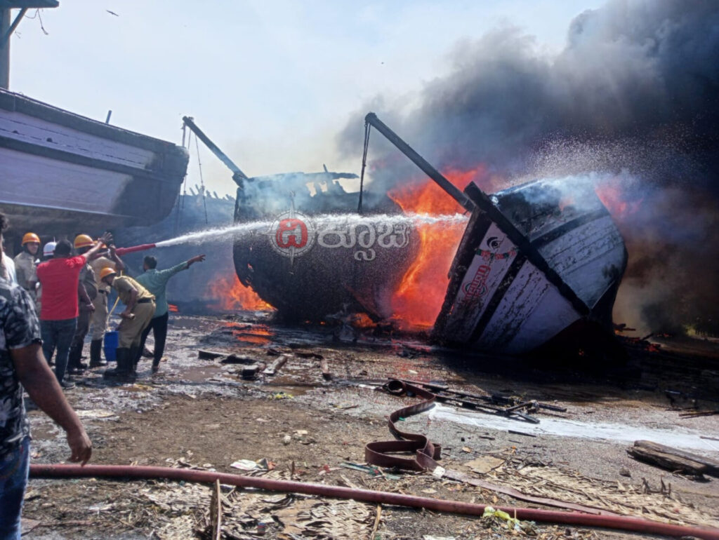 ಹತ್ತು ಬೋಟುಗಳಿಗೆ ಬೆಂಕಿ ಹತ್ತಿಕೊಂಡಿದೆ. ಕೋಟ್ಯಾಂತರ ರೂಪಾಯಿ ನಷ್ಟ ಉಂಟಾಗಿದೆ.