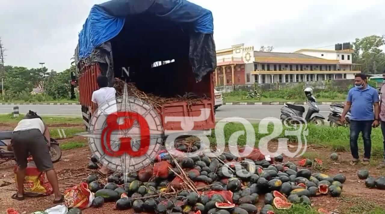 ಇಂದು ಸಂಜೆ ಹುಬ್ಬಳ್ಳಿಯಿಂದ ಬಂದ ಲಾರಿ, ಮಂಗಳೂರಿನ ಮಾರುಕಟ್ಟೆಯಲ್ಲಿ ಕಲ್ಲಂಗಡಿ ಲೋಡ್ ಇಳಿಸಿದ ಬಳಿಕ, ಚಾಲಕ ಮರಳಿ ಹುಬ್ಬಳ್ಳಿಯತ್ತ ಸಾಗುತ್ತಿದ್ದಾಗ ಉಚ್ಚಿಲದ ರಾ.ಹೆ. ಬಳಿ ಕೊಳೆತು ಹೋದ ಕಲ್ಲಂಗಡಿ ಹಣ್ಣುಗಳನ್ನೆಲ್ಲ ಸುರಿದು ಪರಾರಿಯಾಗಲು ಯತ್ನಿಸಿದ್ದಾನೆ.